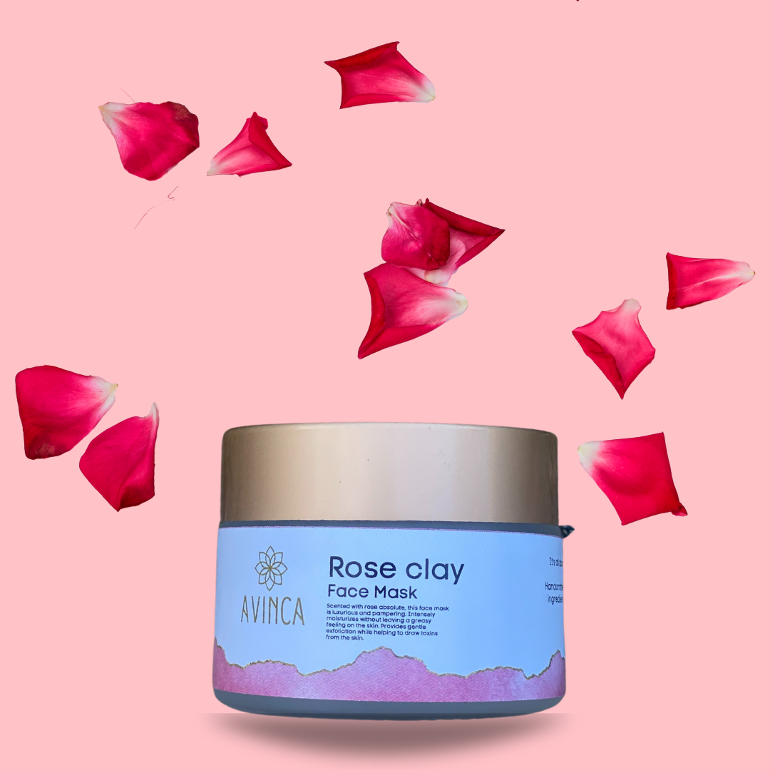 Our power packed rose clay mask is perfect for pampering your skin at home for that natural glow and detox.